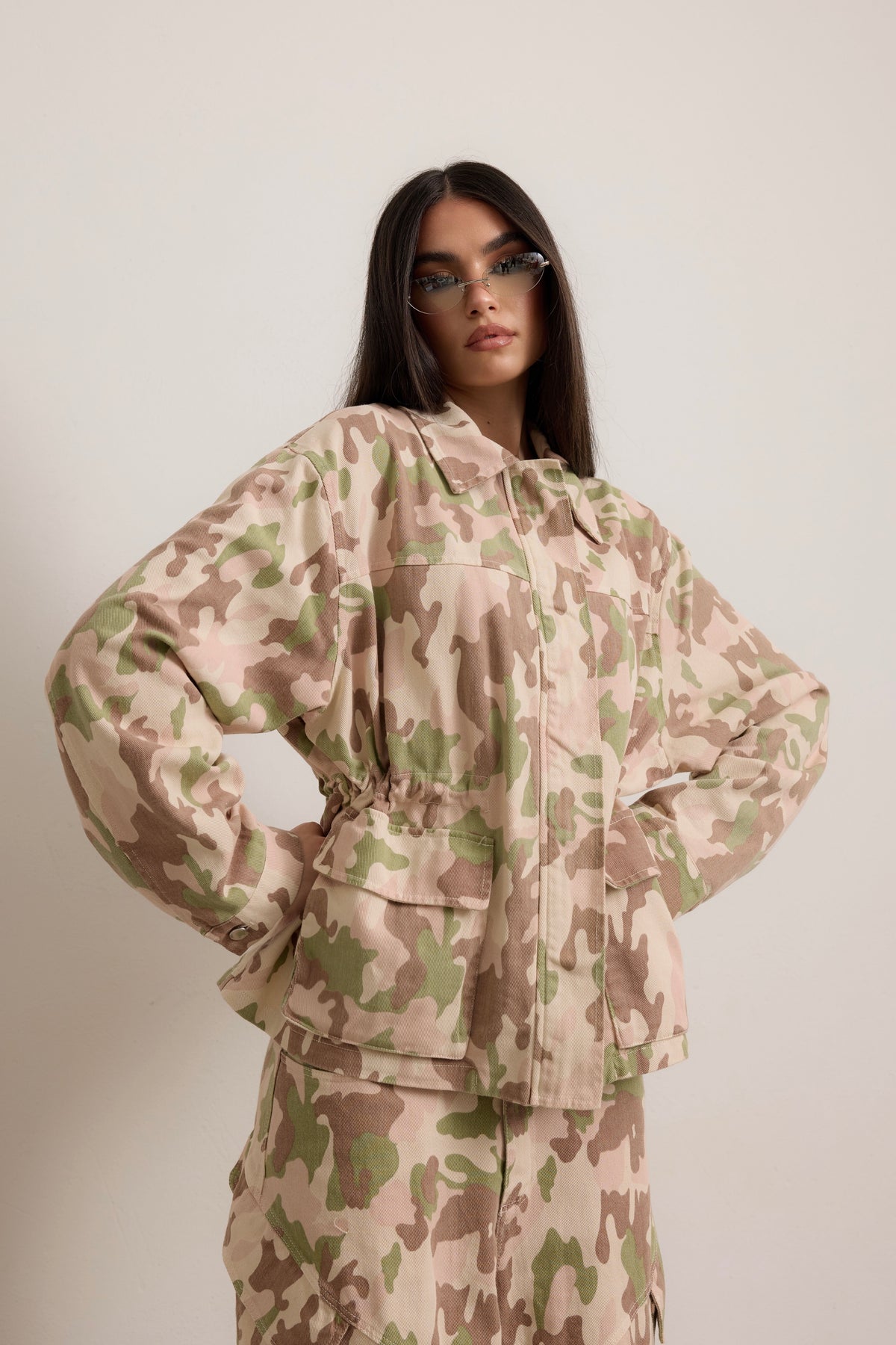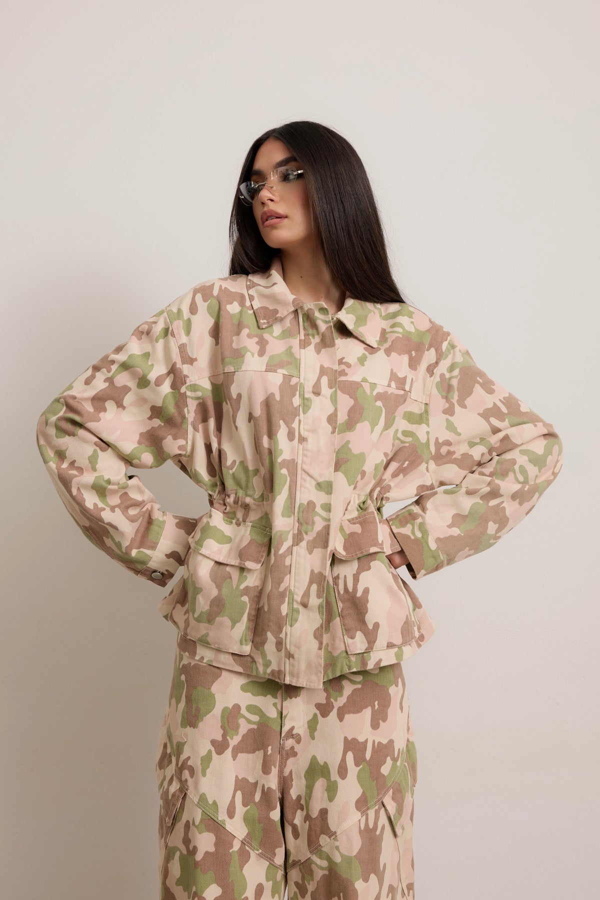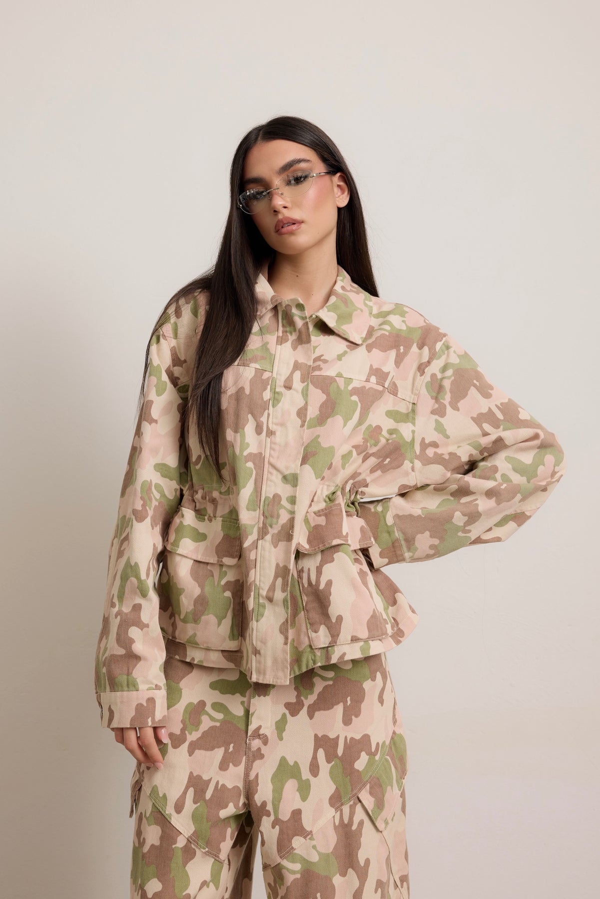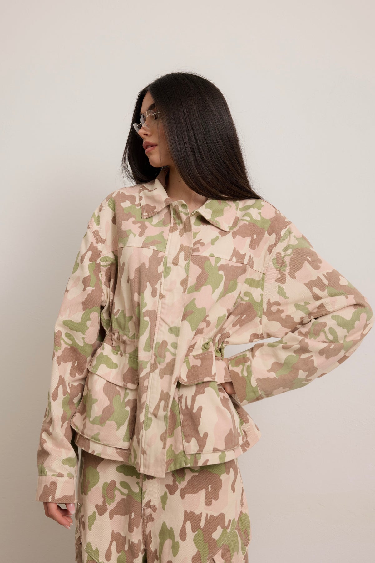 • Giacca taglia unica over con coulisse per poter stringere il punto vita