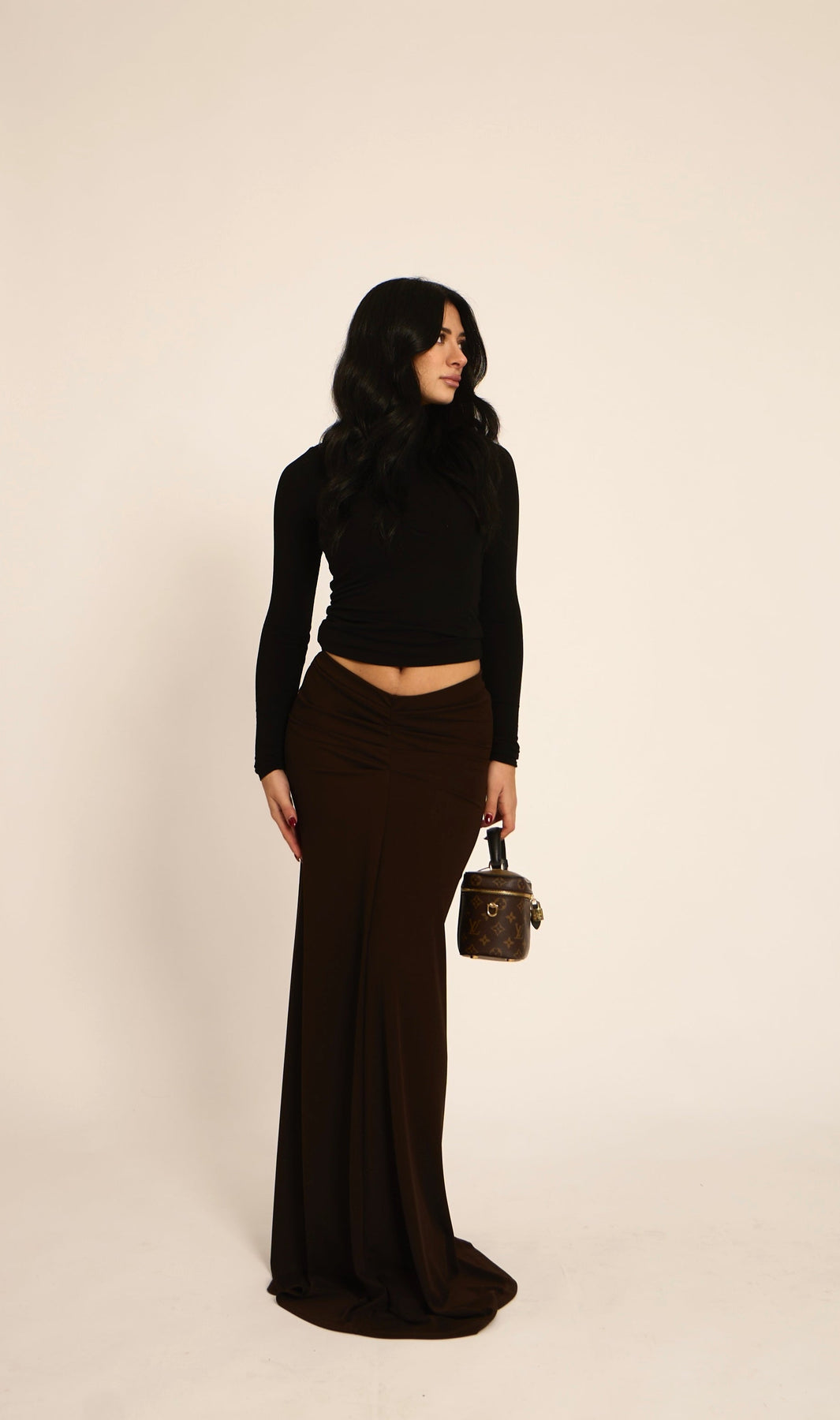 Longuette a sirena con taglio a v in vita e drappeggio sul retro (95% poliestere, 5% elastan)