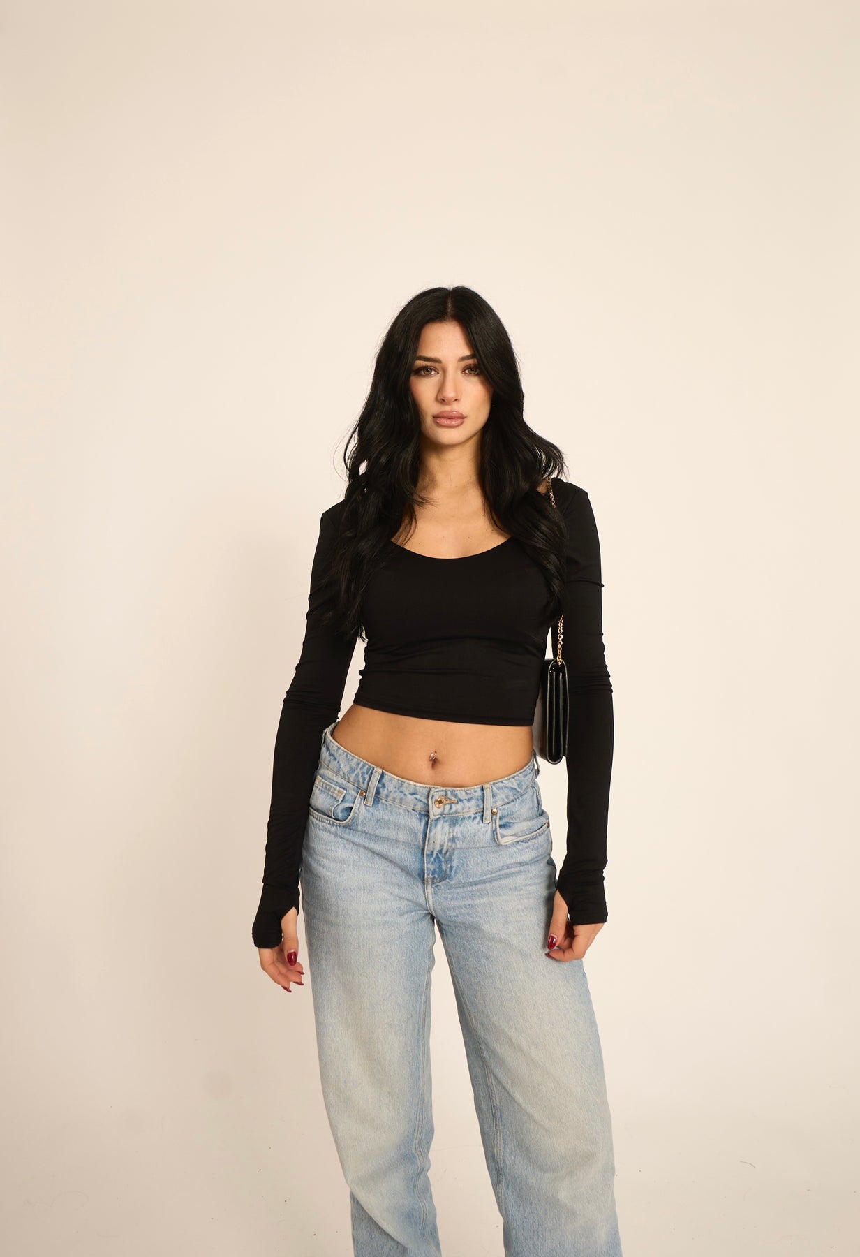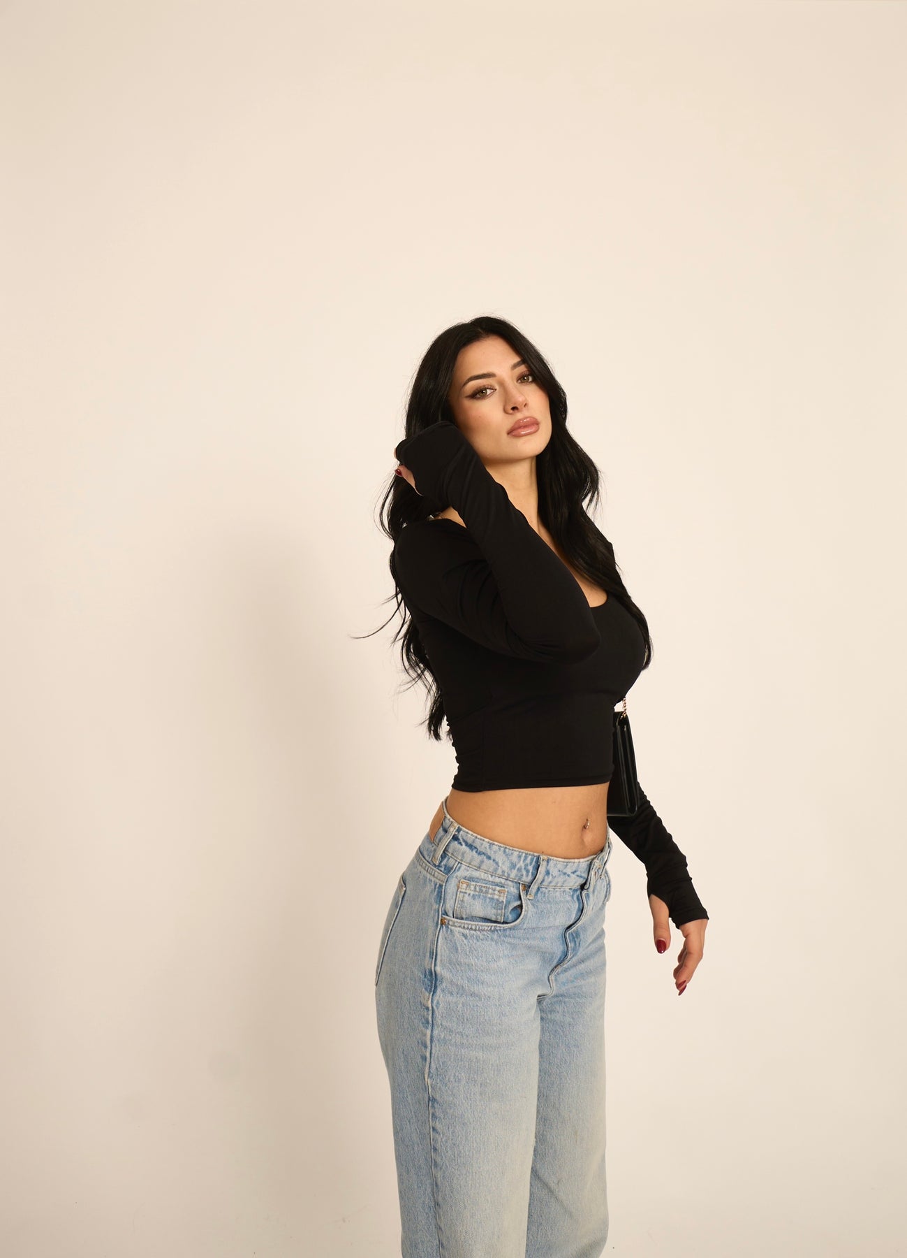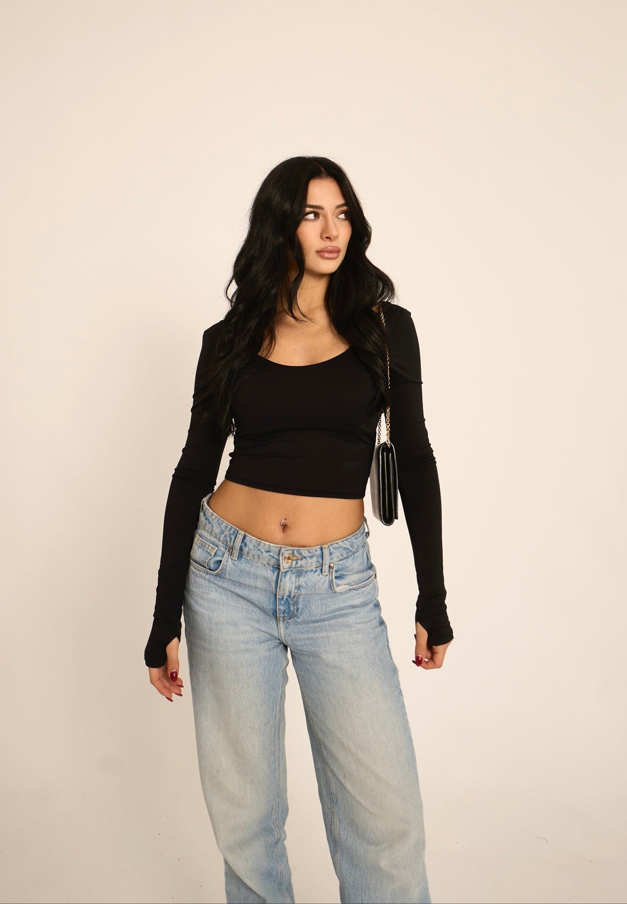 Maglia crop con dettaglio manica a guanto (90% nylon, 10% elastan)