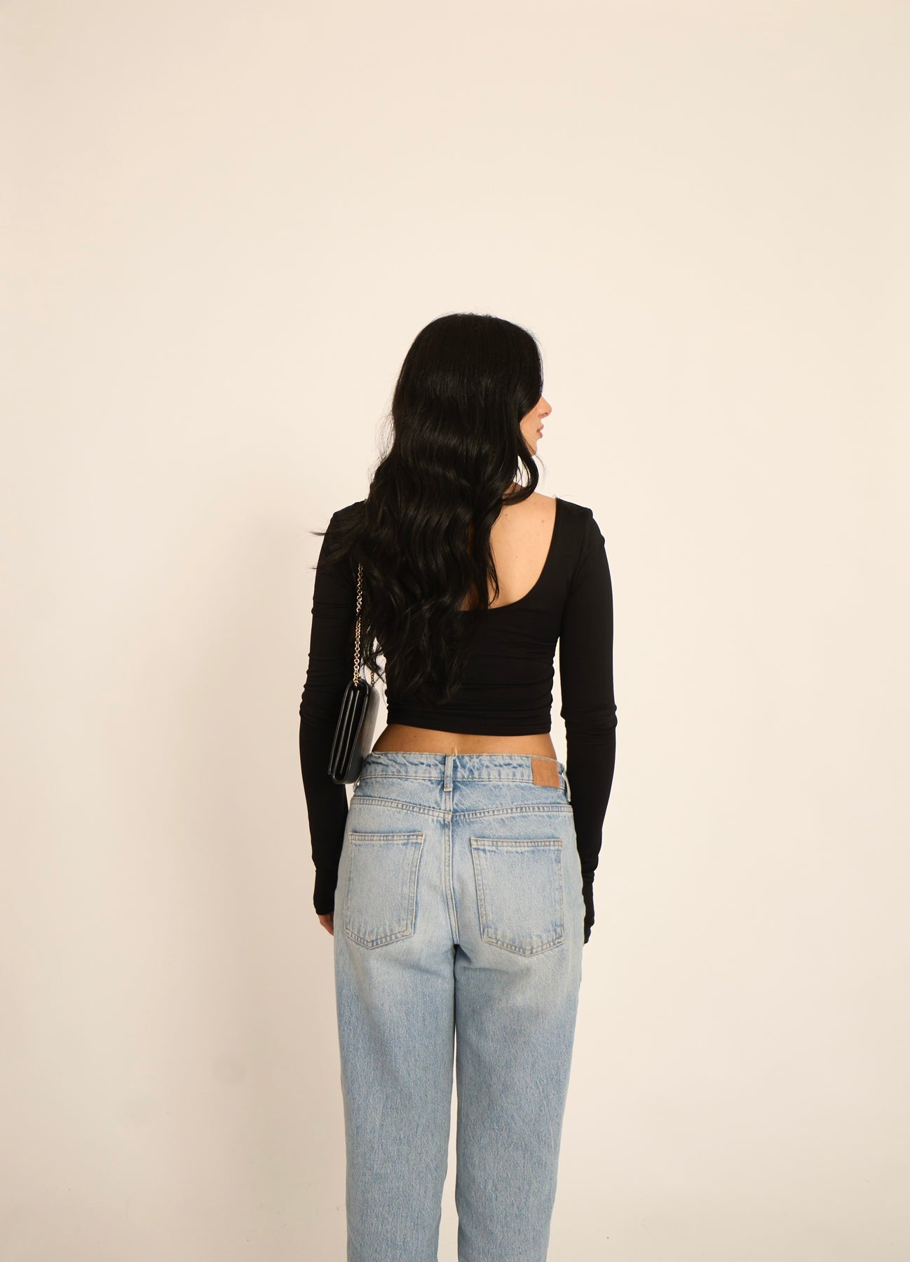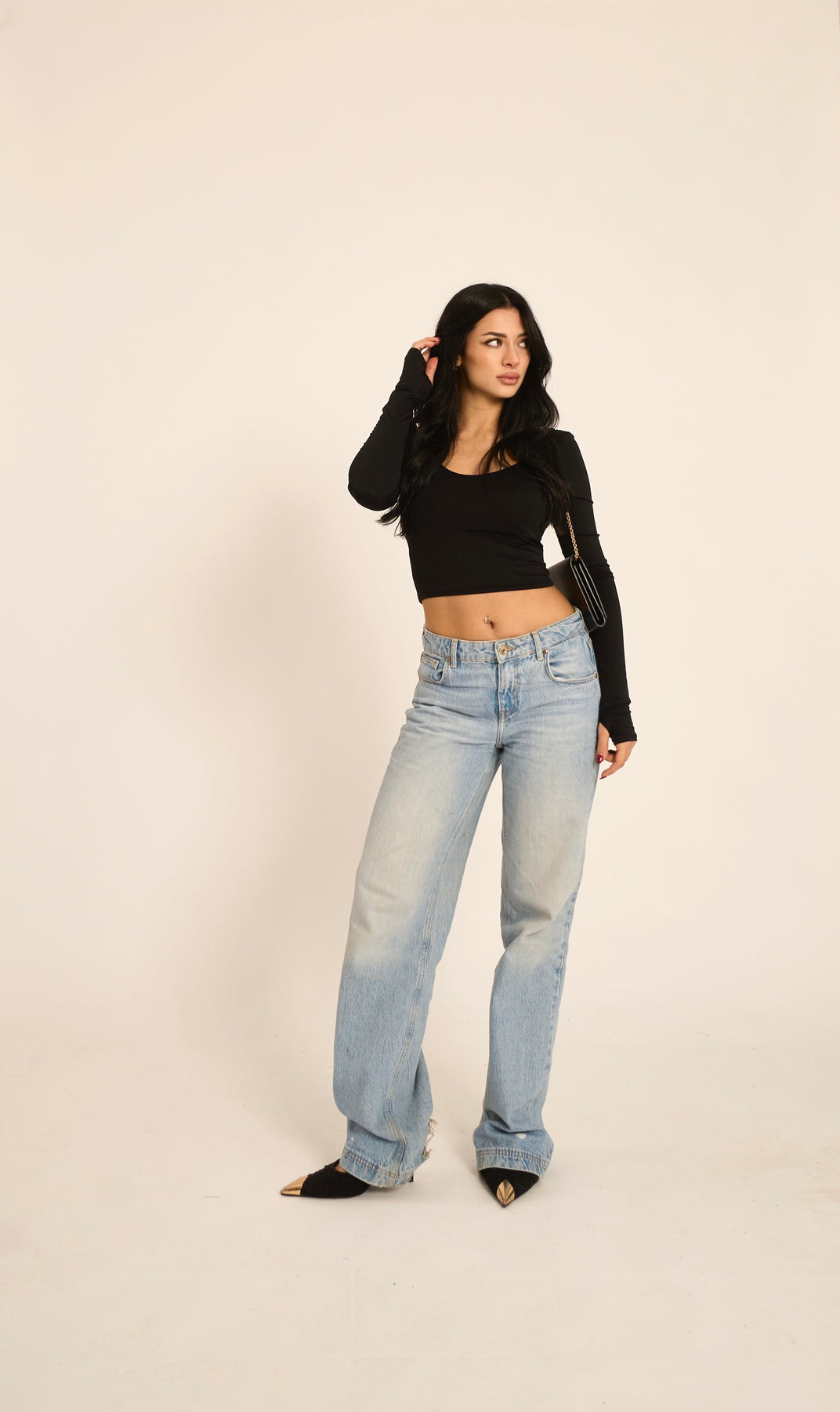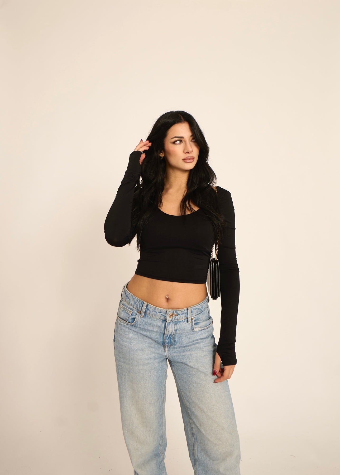 Maglia crop con dettaglio manica a guanto (90% nylon, 10% elastan)