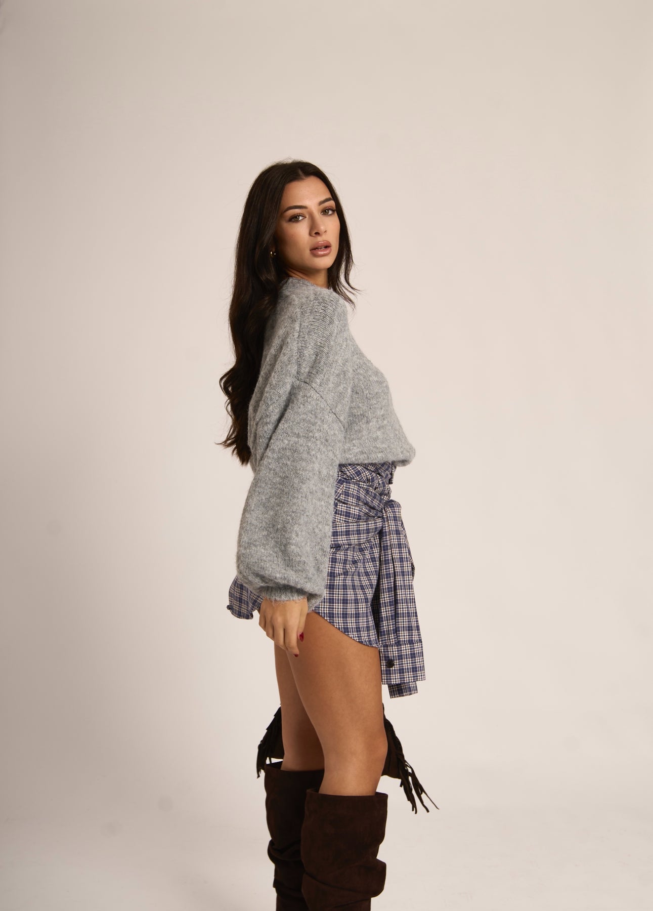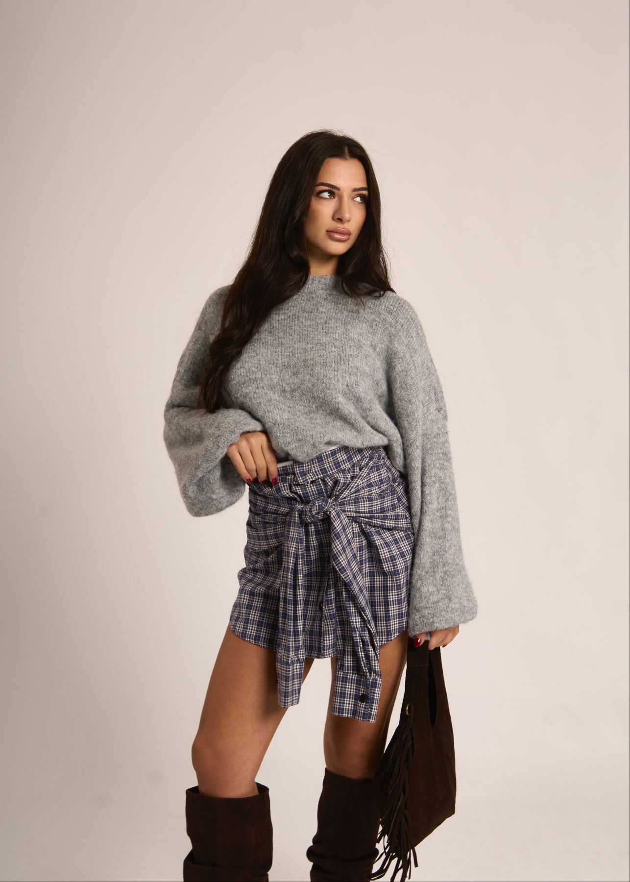 La modella è alta 1.65 m e indossa la taglia unica