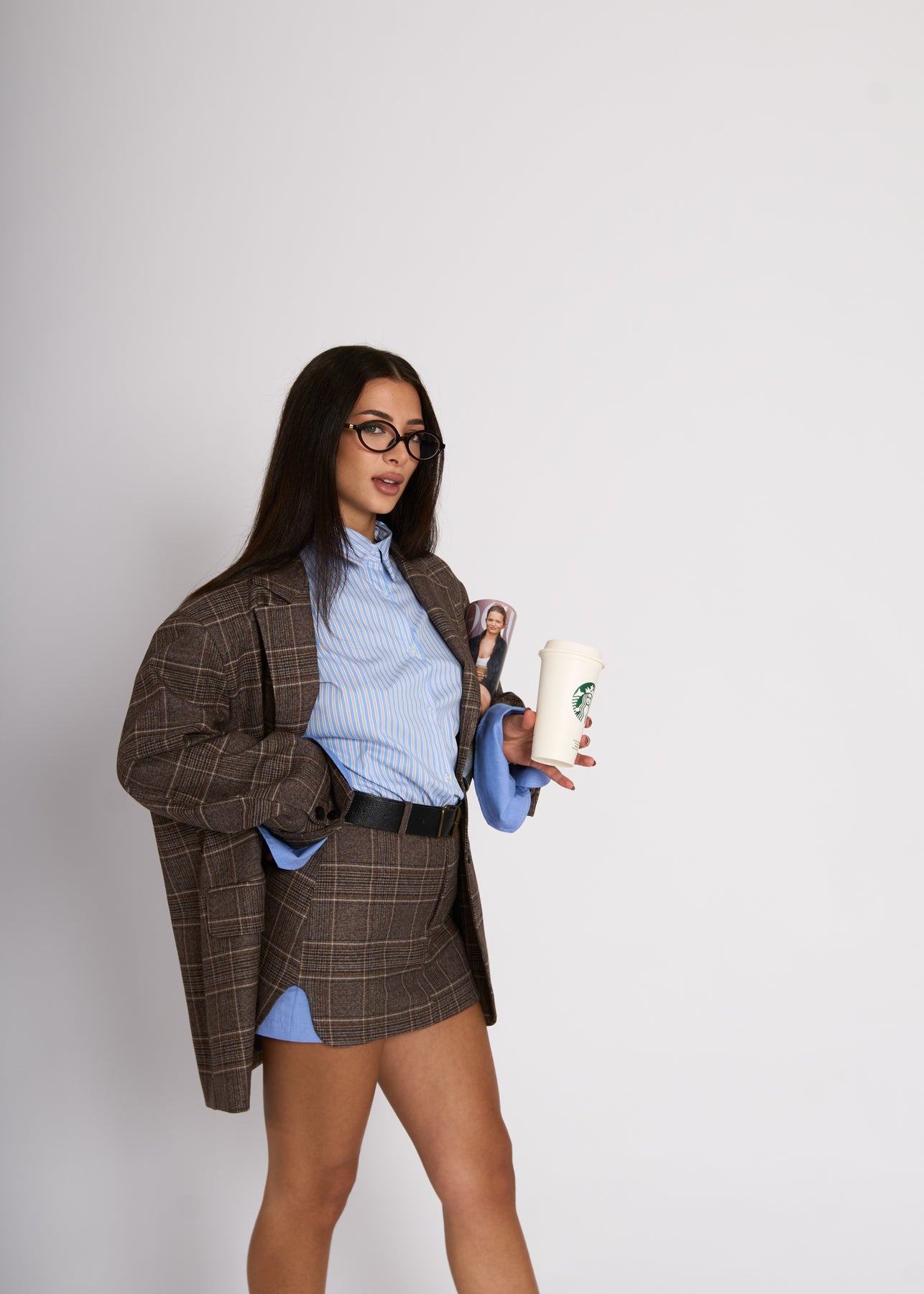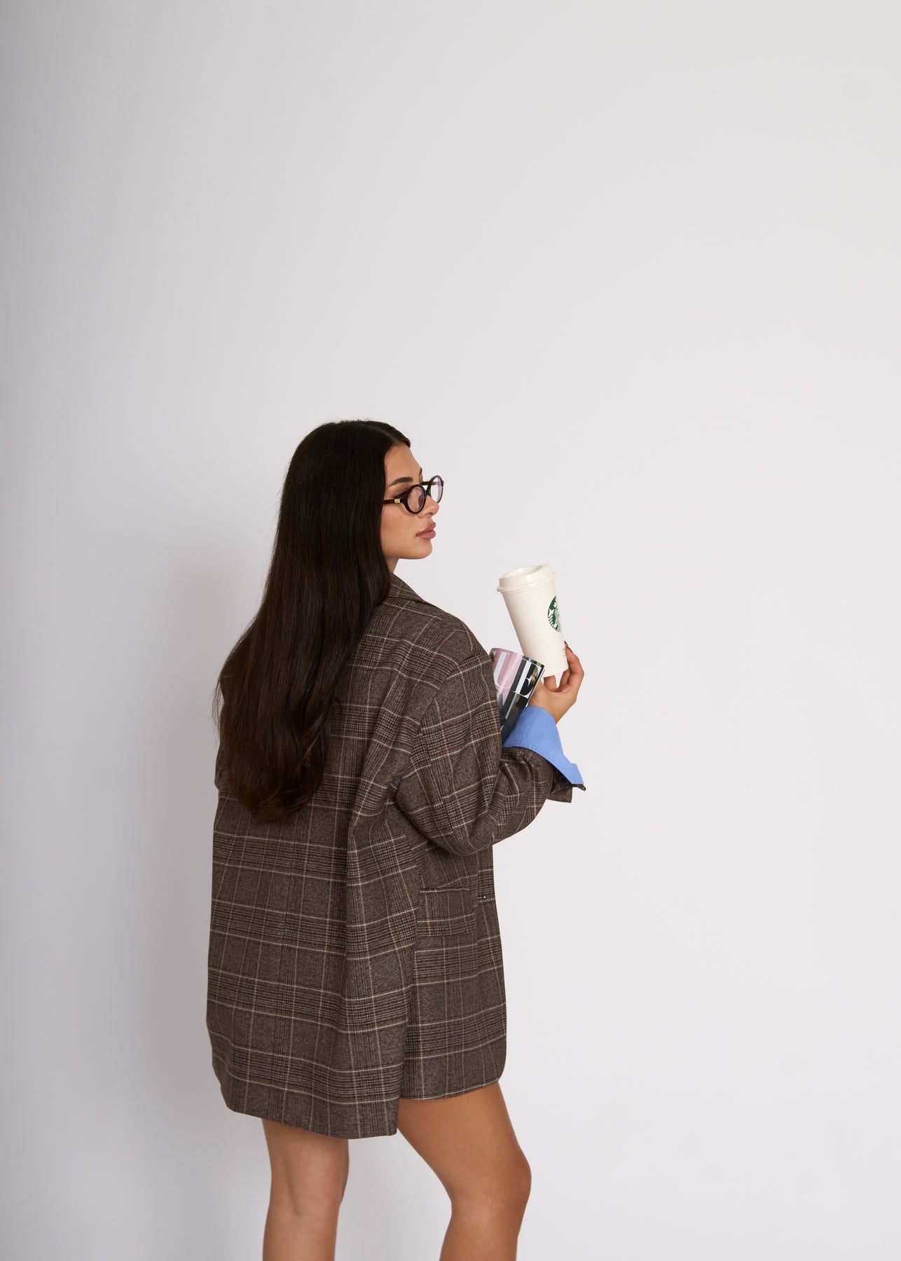 Coordinato in fantasia composto da giacca oversize strutturata taglia unica con dettaglio manica a camicia e mini gonna. La cintura è inclusa (62% poliestere, 35% viscosa, 3% elastan)