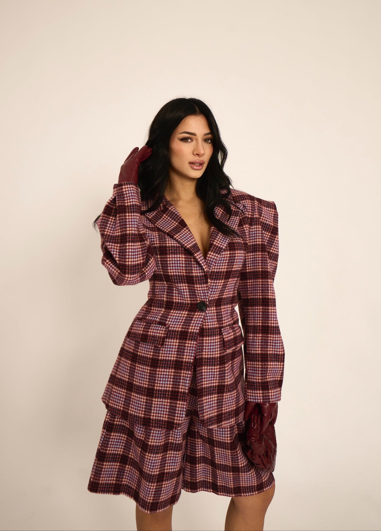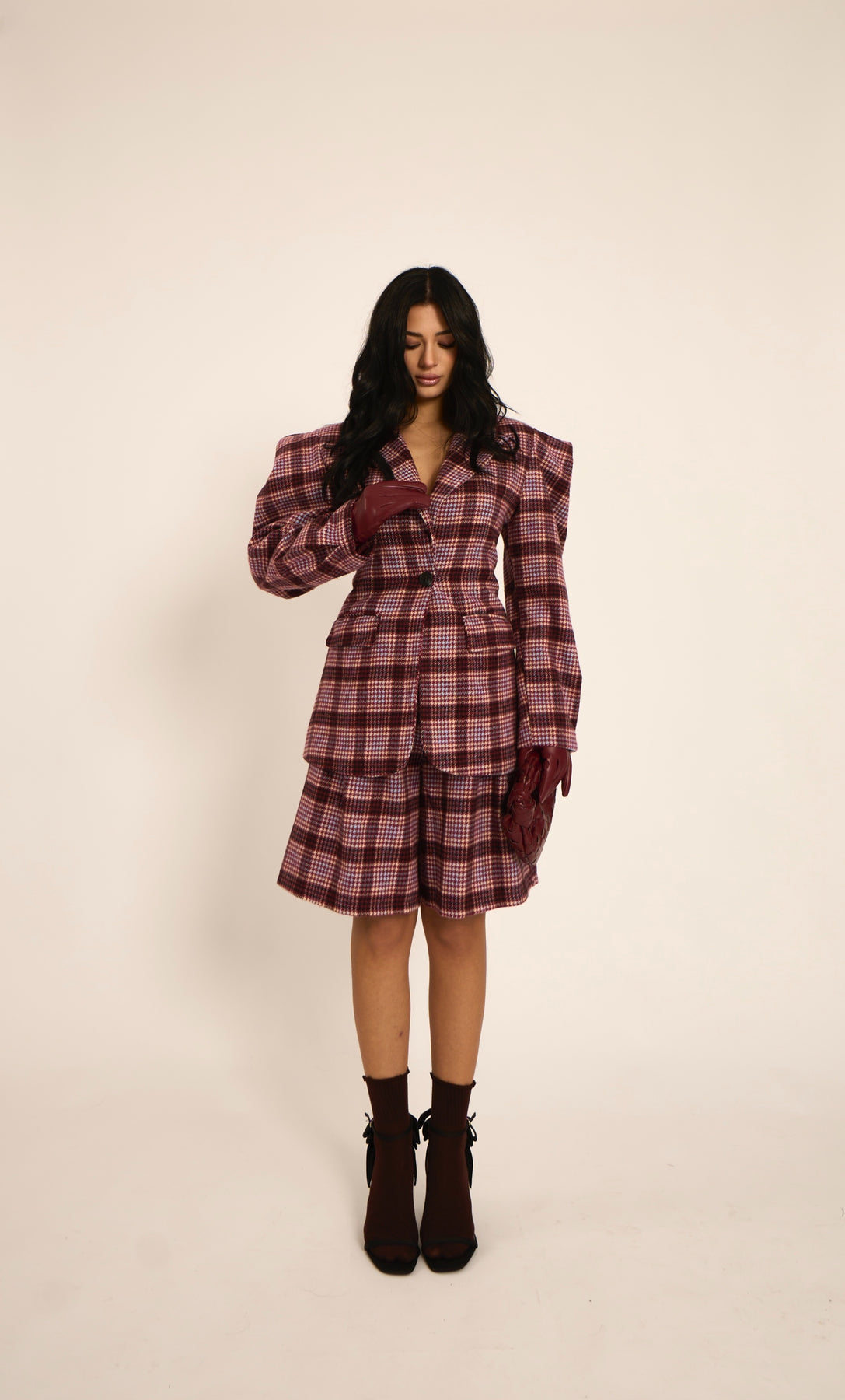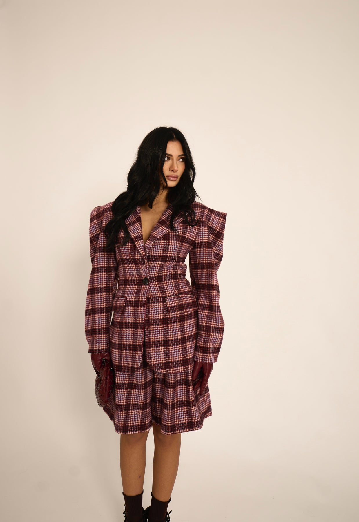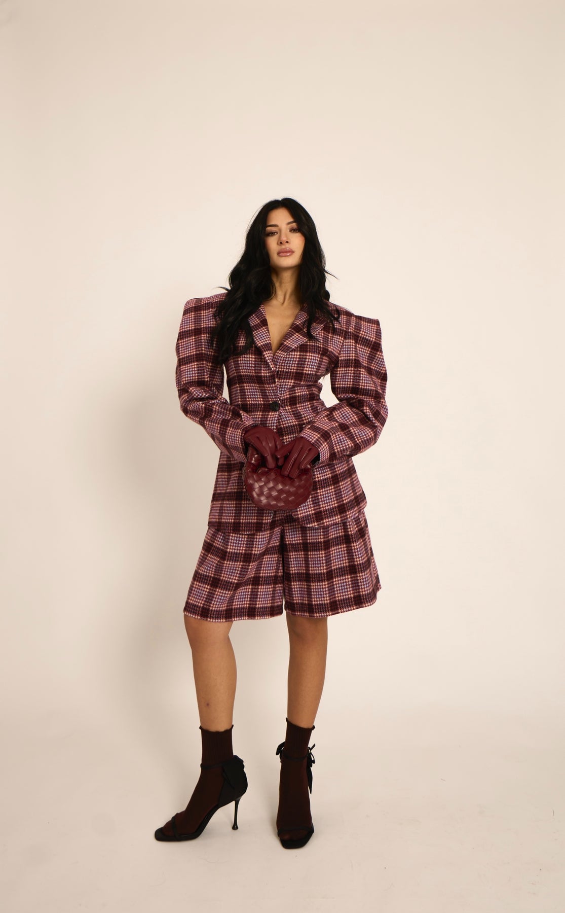 Coordinato in check composto da bermuda ampio con elastico sul retro e giacca strutturata con spalline ampie  (100% cotone)
