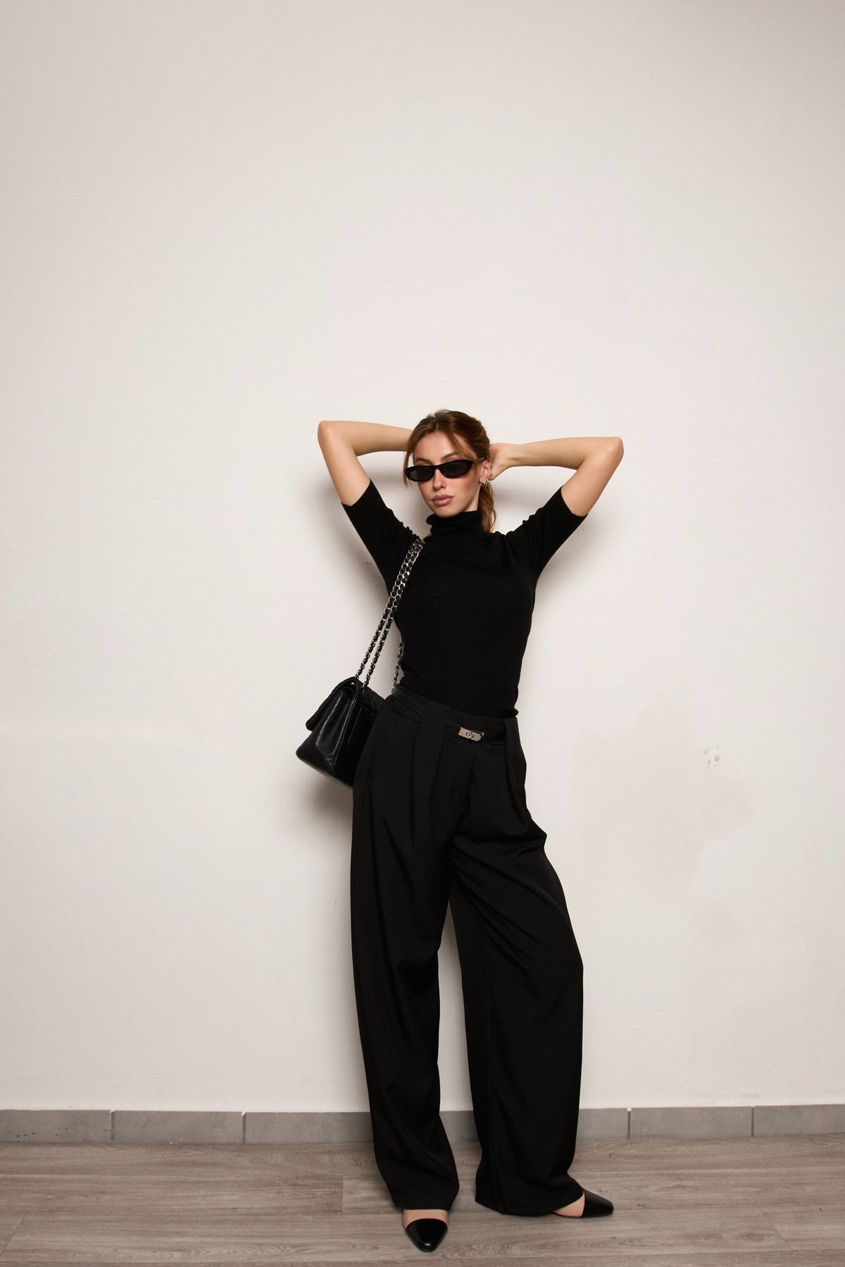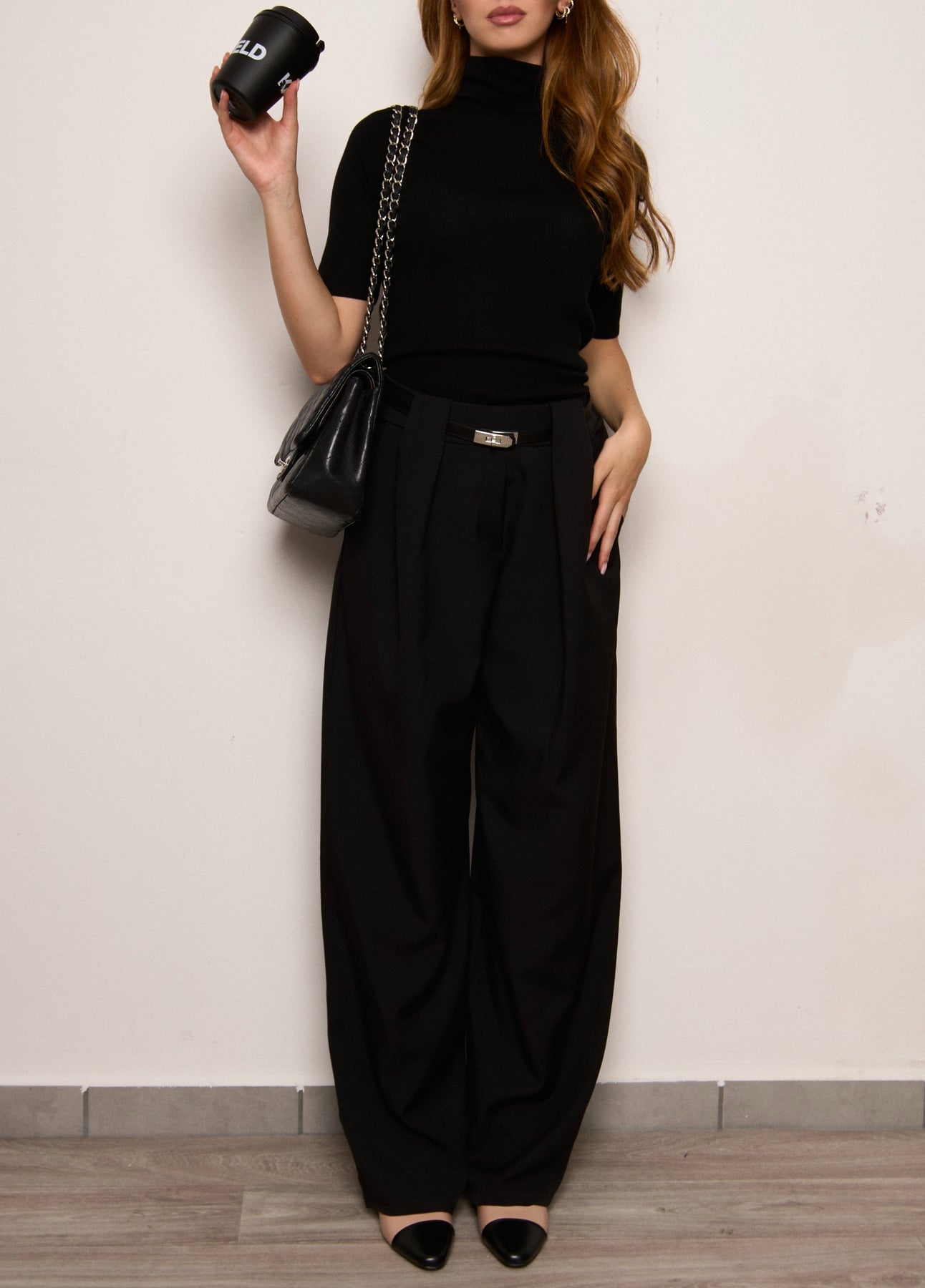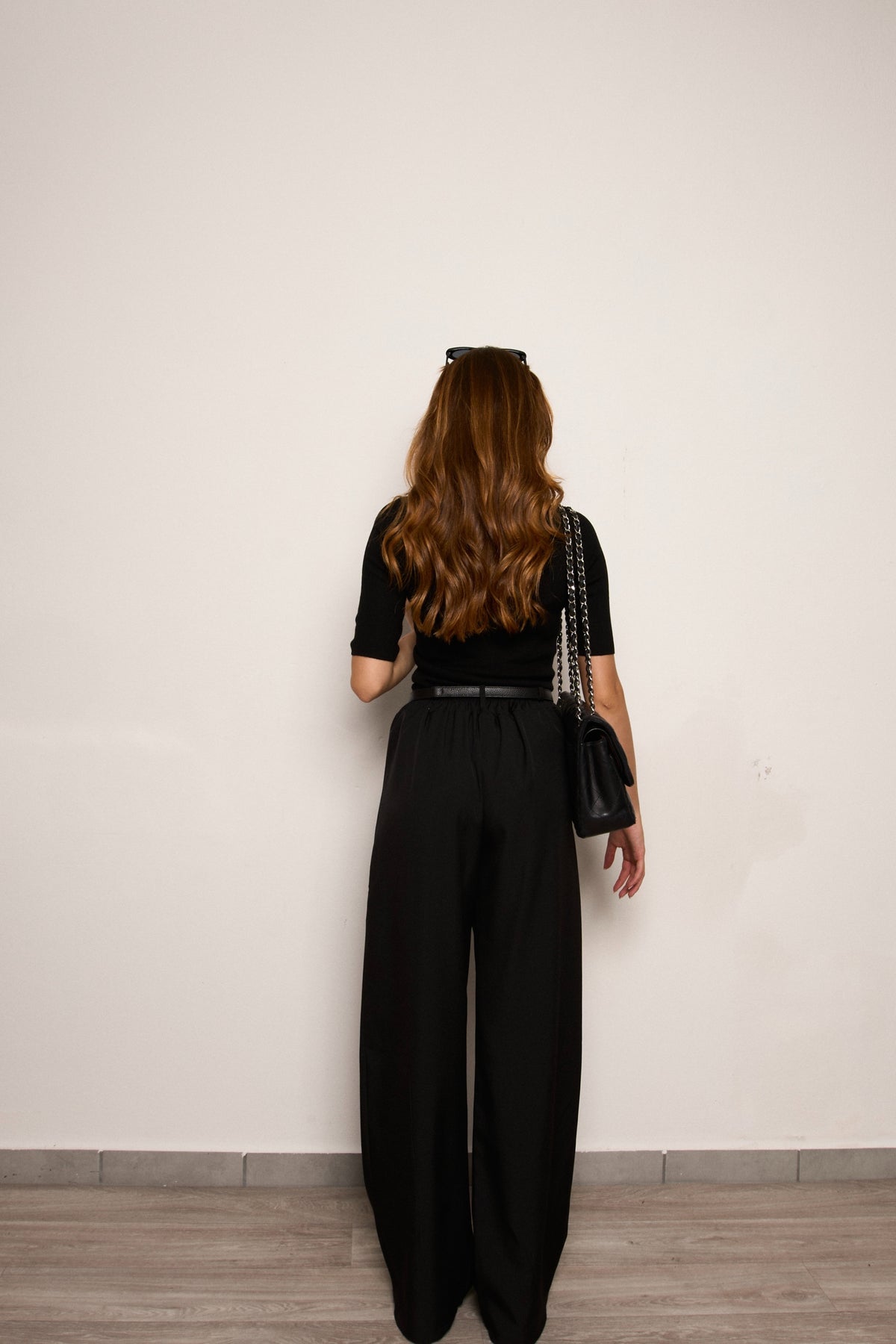 Pantalone morbido con elastico sul retro. Il cinturone con fibbia oro è incluso (78% poliestere,18% viscosa, 4% elastan)